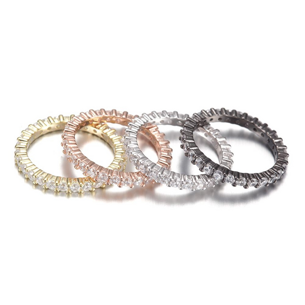 Our Nia Eternity Ring features on-trend style without breaking the bank. (It's a steal!) Stunning CZ stones add the perfect touch of sparkle to this durable stainless steel ring.